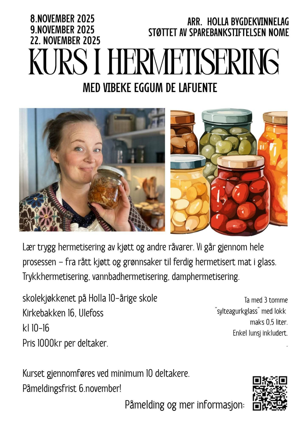 - Høsten 2025 - hermetiseringskurs ved Holla Bygdekvinnelag, Ulefoss